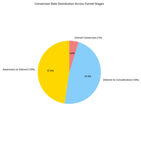 The Conversion Rate Distribution pie chart further breaks down the effectiveness of each stage, highlighting where the most significant opportunities for improvement lie in your sales funnel.